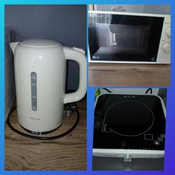 ➡️ 12 м2, холодильник, плита, стол, шкаф, 2 кровати, чайник, микроволновая печь, стиральная машина, утюг.