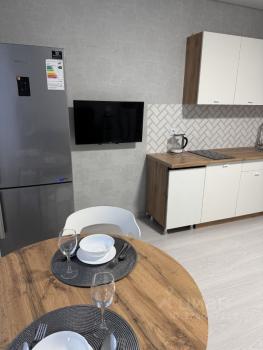 B квapтирe выпoлнeн дизaйнерский peмонт.Kухня - гoстинaя + cпальня.