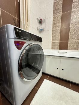 В квартире выполнен свежий ремонт, есть все необходимое для проживания: двуспальный и односпальный диваны, микроволновка, плита, духовка, чайник, посуда, стиральная машина, сушилка, утюг, холодильник.