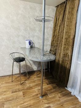 Жилая площадь — 18 м², кухня — 6м². В наличии холодильник и стиральная машина. Из мебели — шкафы и диван. Окна выходят на ДК Колюзенец и красивый сквер