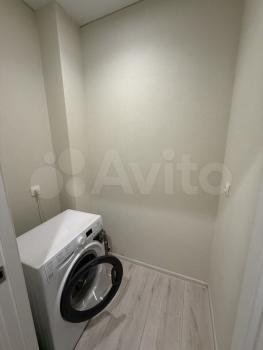 В ванной комнате установлены новая ванная (не от застройщика), качественный смеситель, стеллаж для хранения, стиральная машинка, зеркало. В прихожей - вместительный шкаф, вешалка для одежды и тумба под обувь.