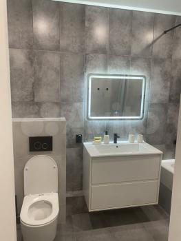 Кондиционер, робот-пылесос, и вся остальная необходимая техника. Два телевизора со smart tv, в комнате 55 диагональ, на кухне 32. Заведен интернет и кабельное ТВ, включены в стоимость. Роутер есть. Также вся посуда, постельное бельё, фен, гладильная доска, сушилка.