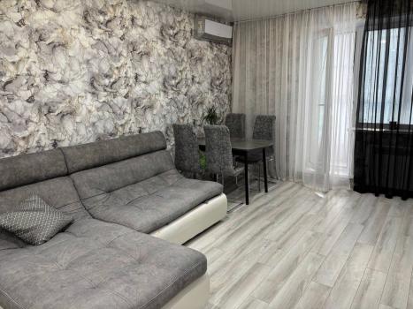 Сдается уютная и светлая квартира, студия + 2 спальни. В квартире есть все необходимое (посудомоечная машина, холодильник, кондиционер, эл.плита, дух. шкаф,вытяжка, микроволновая печь,стиральная машина, а так же водонагреватель на случай отключения горячей воды). На кухне обеденный стол и стулья, так же есть диван (который раскладывается). 2 спальные комнаты с удобными кроватями. Теплая лоджия с панорамным окном в пол. Оплата счетчики( вода+ свет)
