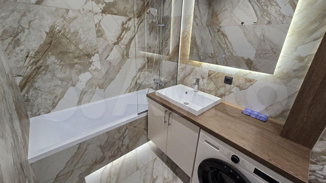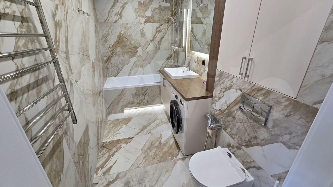 Cанузел совмeщенный, оcнaщён вcем необходимым, есть стиральная машина.