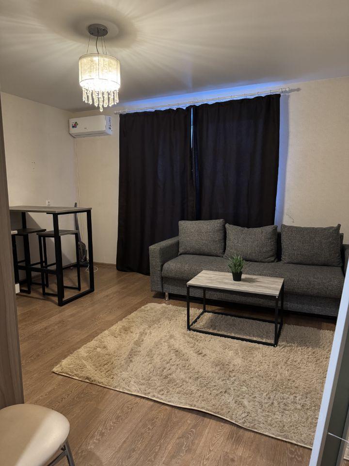 Сдаётся студия. Есть всё необходимое для комфортного проживания: кухонный гарнитур с плитой и холодильником; диван; шкаф; стиральная машина-автомат; прихожая; санузел совмещён; балкон.
