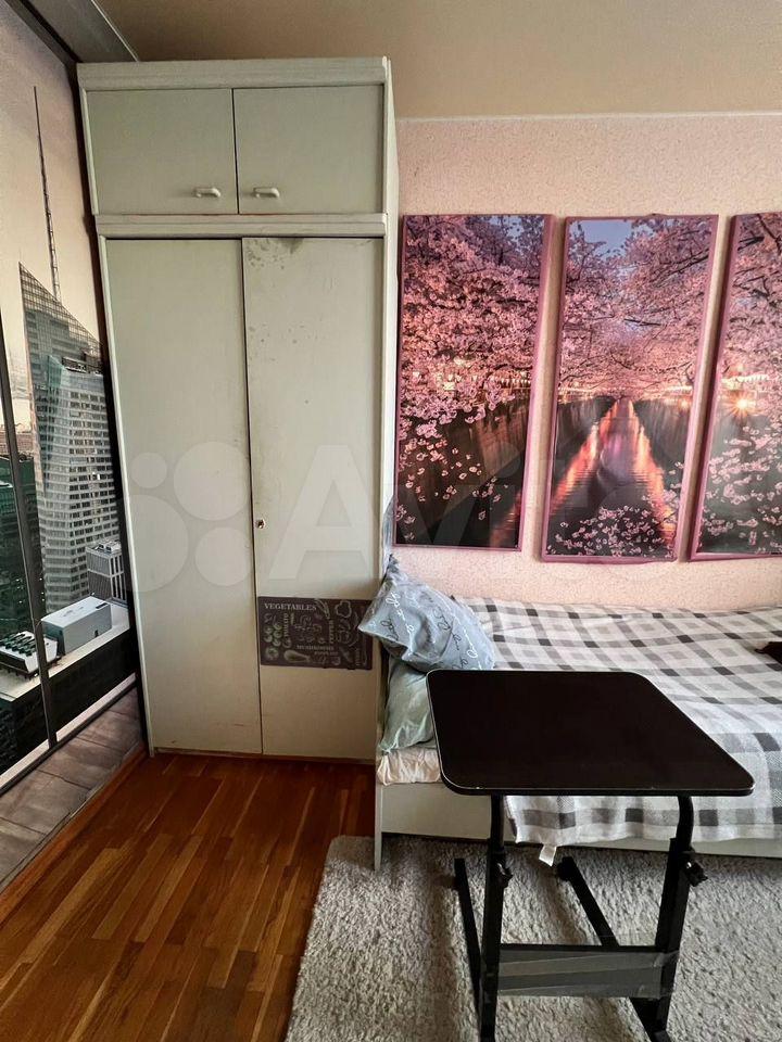 Жилая площадь — 18 м², кухня — 6м². В наличии холодильник и стиральная машина. Из мебели — шкафы и диван. Окна выходят на ДК Колюзенец и красивый сквер