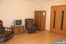 Квартира сдается с мебелью: большой угловой диван (на фото отсутствует) 3 спальных места, шкаф для одежды, телевизор, тумба под телевизор, обеденный стол со стульями, шкаф для посуды, стеклокерамическая плита, холодильник
