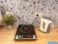 ▶️ Мини-кухня с индукционной варочной плитой, холодильник, чайник, СВЧ печь и вся необходимая посуда и кухонные принадлежности