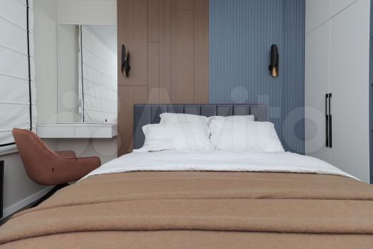 ?Спальня: двуспальная кровать , телевизор, шкаф, зеркало, консоль , кресло, рабочее место.