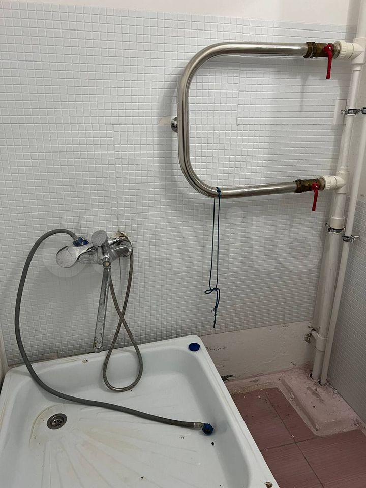 Санузел совмещенный, в плитке до потолка, натяжной потолок. Вся сантехника новая, трубы поменяны. Есть стиральная машина и водонагреватель.
