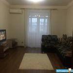 В гостиной - угловой диван (разбирается), большой плазменный телевизор, сафбуфер. Окна в пол выходят на балкон.
