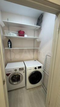 мебель - кухня, хранение одежды, спальные места, холодильник, плита, микроволновка, стиральная машина, телевизор.