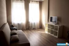 1-комн. квартира улучшенной планировки, в элитном монолитно-кирпичном доме, в самом центре города. Есть все для комфортной жизни: кухонный гарнитур, электроплита, микроволновка, холодильник, чайник, автомат. стиральная машина, утюг, телевизор, кровать (1,80м. на 2м.), диван, большая лоджия с шикарным видом на самый центр города. Район с развитой инфраструктурой (рядом множество крупных и мелких супермаркетов, фитнес центров, поликлиник, мед. центров и т.д.) и удобной транспортной доступностью (остановка общ. транспорта около дома, автопарковка на закрытой территории дома - ключ от шлагбаума предоставляется). В стоимость включены все коммунальные платежи. На длительный срок (минимум от 6
