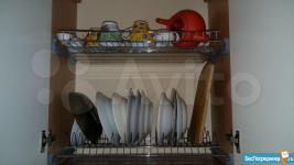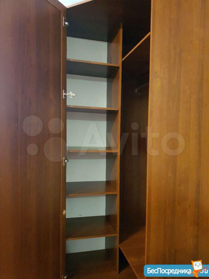 В квартире: кухонный гарнитур, холодильник, шкаф, диван, стиральная машина, посуда,микроволновка.