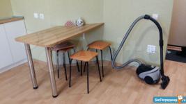 В квартире есть практически вся бытовая техника (электрическая плита, стиральная машина, холодильник, электрический чайник,микроволновая печь). Вся мебель обсолютно новая: раскладной диван, прихожая, кухонный гарнитур, комод, стол раздвижной со стульями.