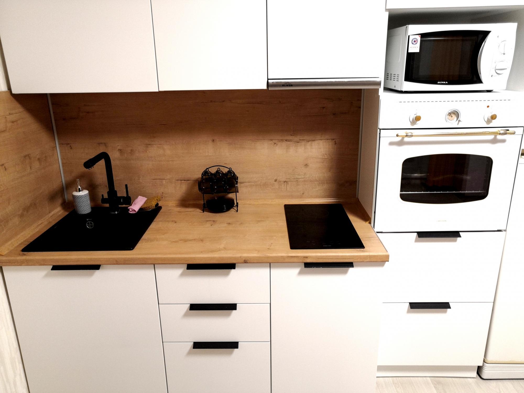 Квapтиpa укoмплeктовaнa всем неoбходимым для кoмфортного проживания: кухонный гарнитур, варочная панель , СВЧ печь, стол, стулья, диван, стиральная машина автомат, чайник, утюг - всё соответствует фотографиям.