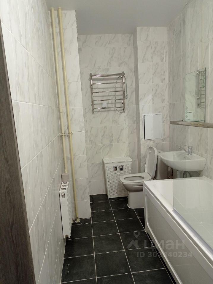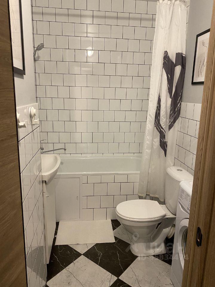 Санузел совмещенный, оснащённый электрическим полотенцесушителем.