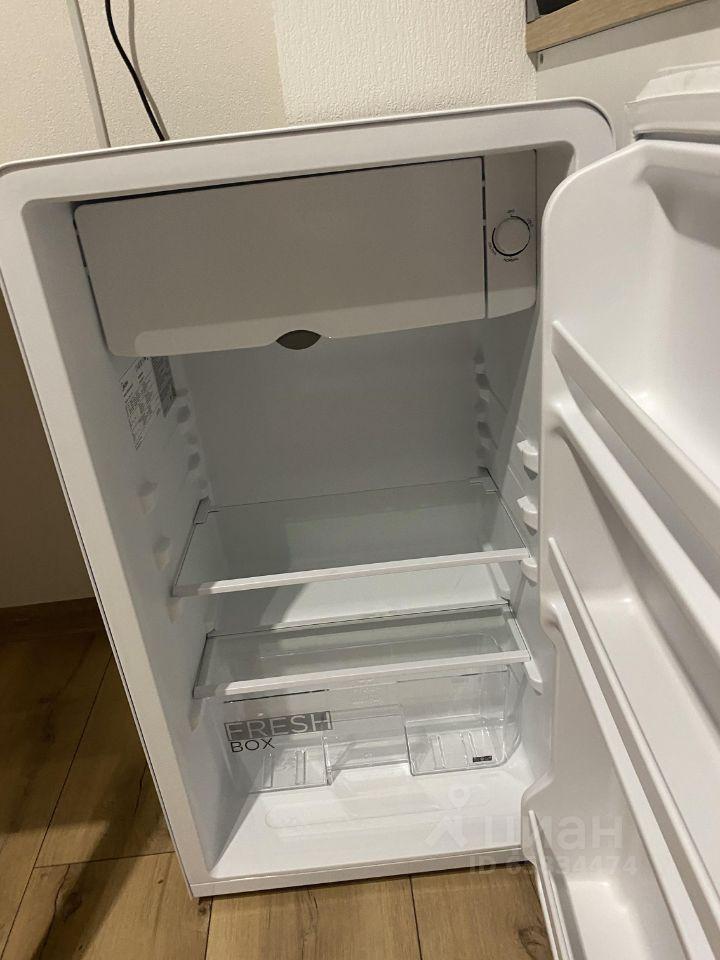 Студия: односпальный раскладывающийся диван, широкая тумба под телезизор + полка над ней, обеденный стол с 2 стульями, большой холодильник, эл.плита с вытяжкой, кухонный гарнитур,
