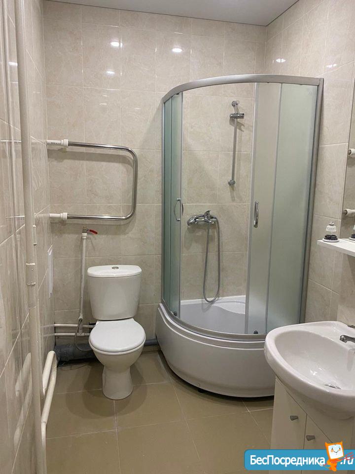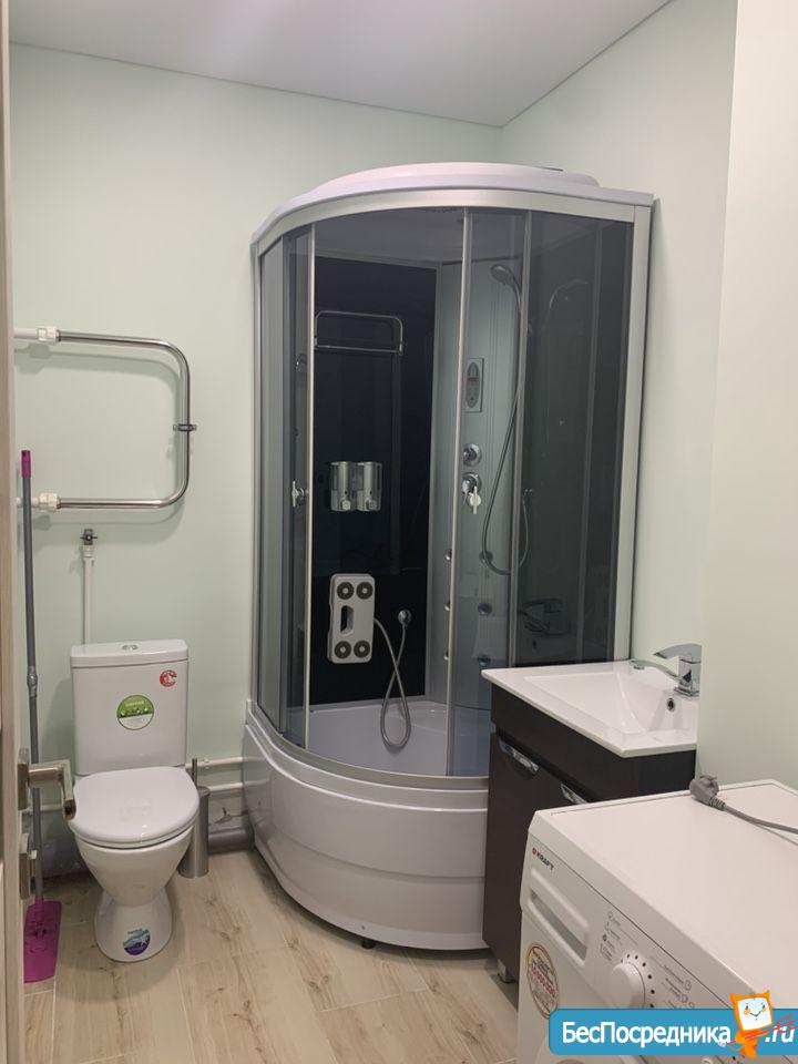 В санузле установлена стиральная машина, душевая кабина. На днях довезем холодильник, плиту и шкаф для вещей.