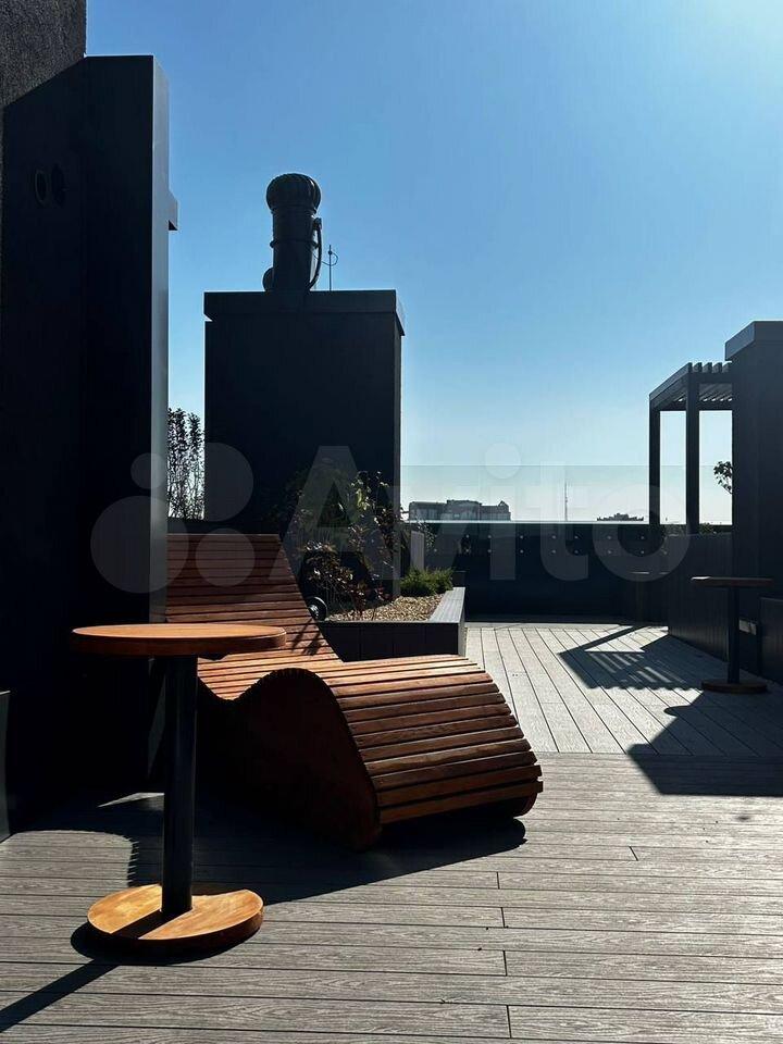 А уникальным его делает эксплуатируемая кpовля (место для отдыха, с шезлонгами, столиками и местом для пикника, вид с крыши на всю панораму города) парадная с мягкой мебелью и телевизором, круглосуточная охрана и менеджер дома на ресепшене.
