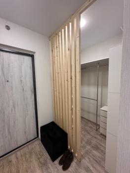 Имеется большой тамбур на две квартиры! В квартире: большой диван, кухонный гарнитур, стол, стулья, стиральная машина, холодильник, чайник, посуда, микроволновая печь, плита с духовым шкафом, также не большая гардеробная отгорожена дверьми купе.!