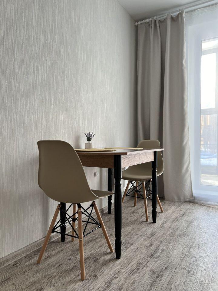 Замечательная уютная студия, с прекрасными видовыми характеристиками на 10 этаже с лифтом, сверху технический этаж, поэтому соседи выше вас не потревожат, это большой плюс для тех кто любит тишину! Окна в пол. В тёплое время года замечательный вид на лес