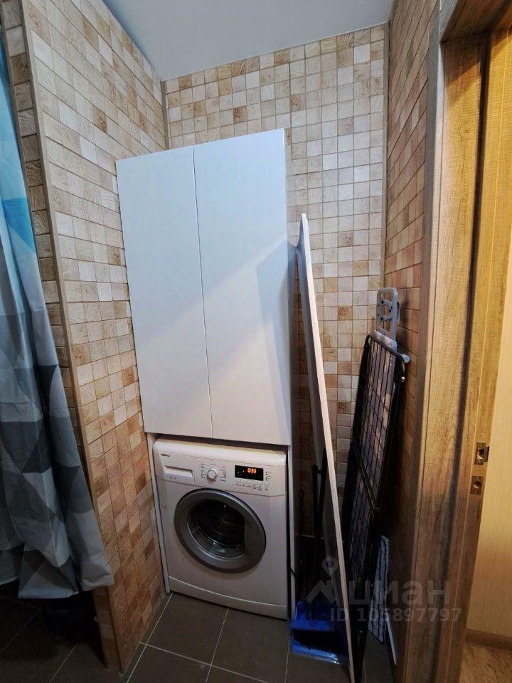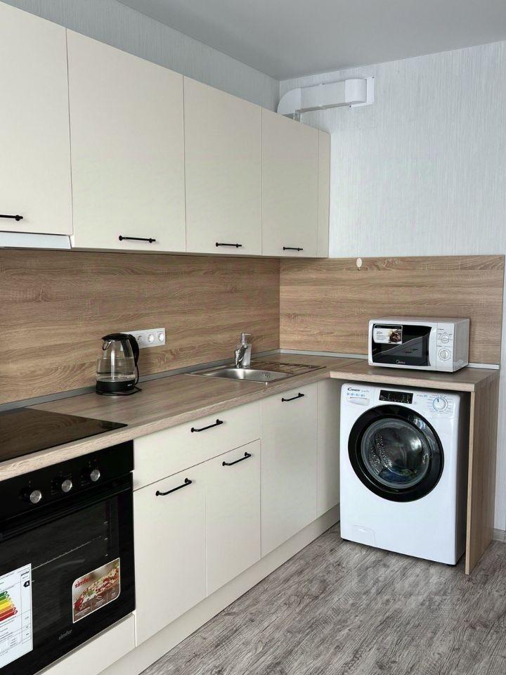 В квартире все необходимое для жизни: посуда, кухонный гарнитур, чайник, холодильник, микроволновая печь, плита, стиральная машина.