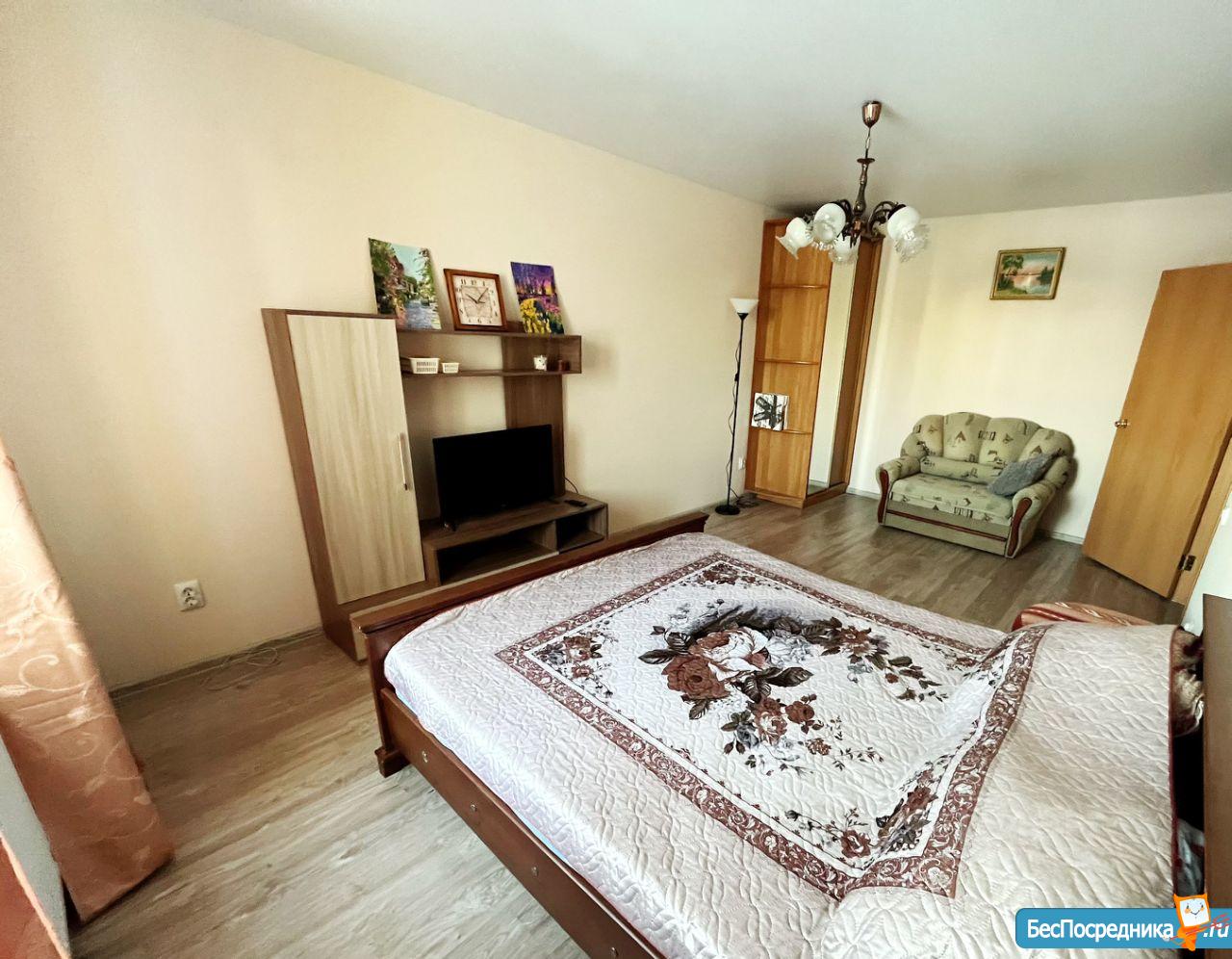 Близость к центру (10минут), так и к северо-западу.Транспорта во все направления города.В квартире WI FI TVВся необходимая мебель и техникаЗалог 10 тысяч рублей + фото паспорта (Гарантия сохранности мебели техники ремонта и ненакуренности так как квартира новая и не прокуренная!!!!)