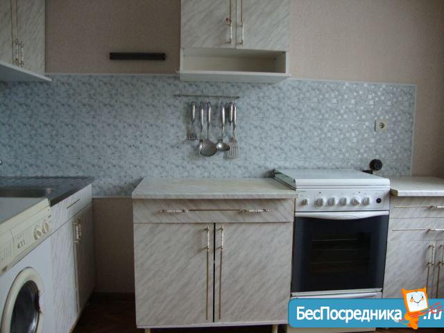 Есть кухонный гарнитур с вытяжкой, электроплита, холодильник, стиральная машинка, гарнитур в прихожей, балкон застеклен и утеплен. В комнате - диван и шкаф-купе, комод, тумба под телевизор, телевизор. Во всей квартире на полу - ламинат.