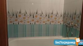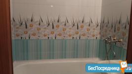 *Ванная комната: ванная, раковина с тумбой, большое зеркало-шкафчик, стиральная машина автомат.
