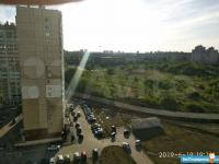 Вид из окна на сад ЧелГУ. Территория вокруг дома благоустроена, детская площадка. Парковки для а/м есть.