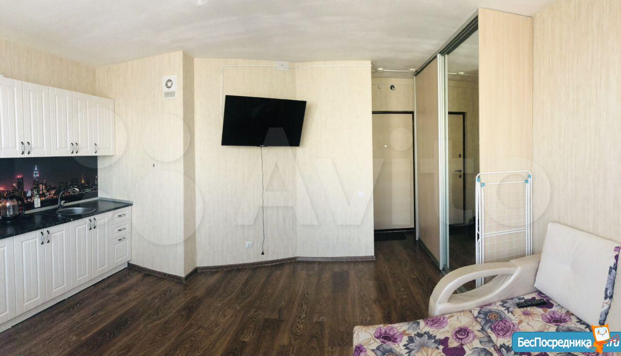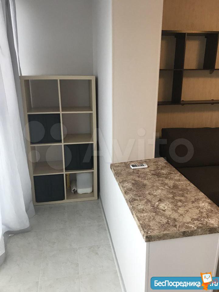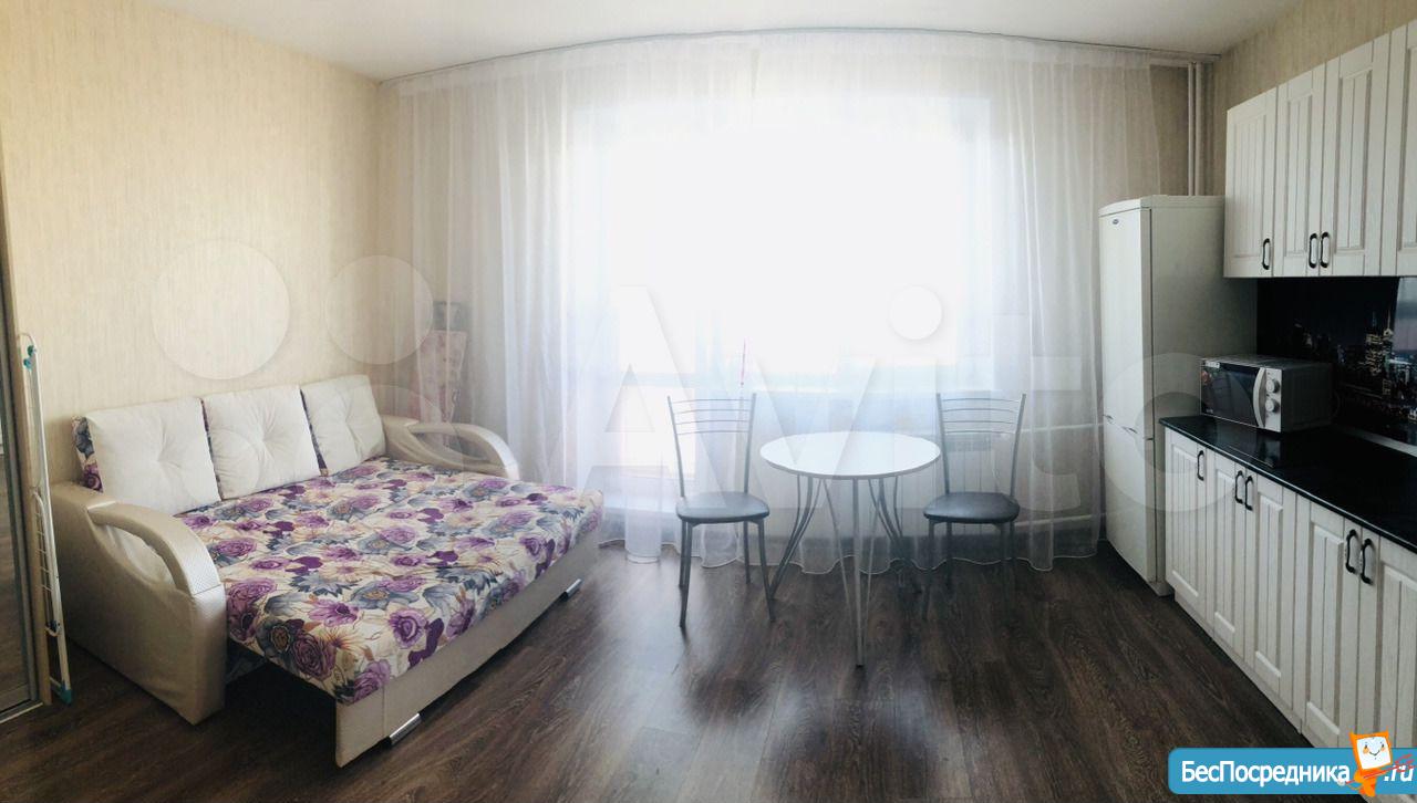 ремонт, полностью укомплектована мебелью и техникой, мягкая мебель, шкаф-купе, бытовая техника, телевизор, лоджия с отделкой. Студия уютная, чистая, теплая. Всё для комфортного проживания.