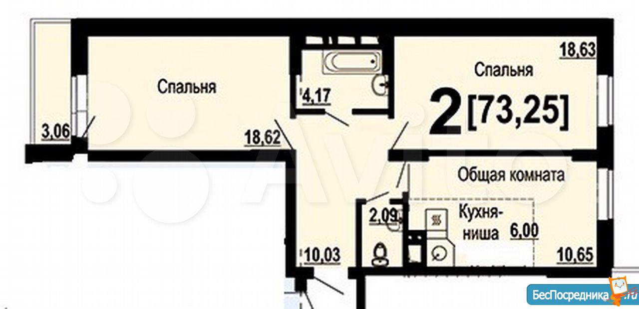 Кв.двухкомнатная 72 м2.
