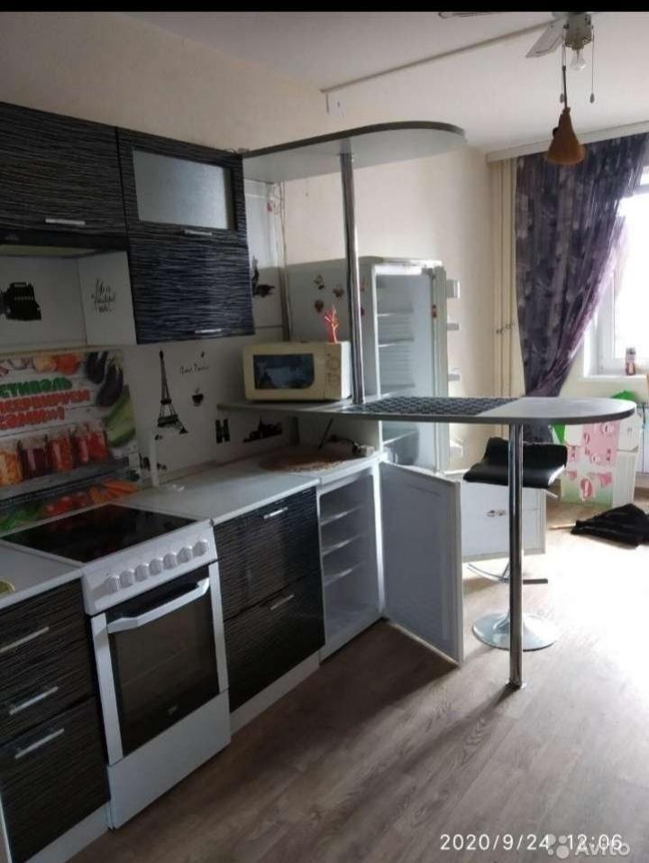 плита(новая), холодильник(новый), микроволновка(новая), вытяжка (новая), кухонный гарнитур(новый). Даже чистый комплект полотенец и постельного белья . Заезжай и живи .