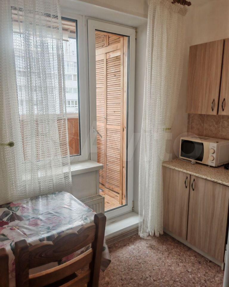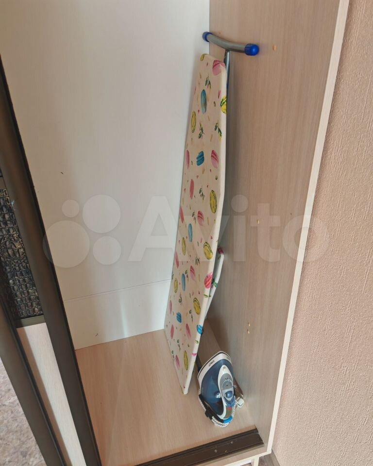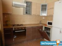 В квартире есть кухонный гарнитур, стеклокерамическая плита, стол с 4 стульями, 2 шкафа.