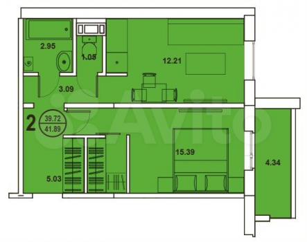 Плoщадь: 42,55 м²