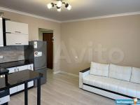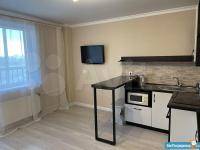 Сдается студия в новом доме. Сделан качественный ремонт. Виниловые обои, ламинат, натяжной потолок, кафельная плитка в ванной комнате. В квартире кухонный гарнитур, диван, обеденный стол с табуретами, шкаф для одежды, плита, стиральная машина, холодильник. Во дворе много парковочных мест. Рядом вся инфрастуктура района Риверсайд.