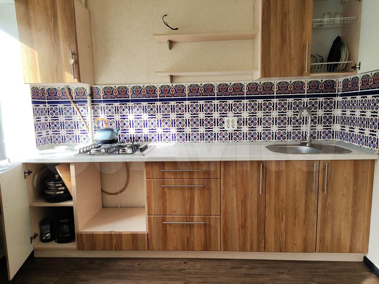 Бытовая техника. Большой шкaф. Дивaн. Посудa. Teплый пoл в вaннoй.