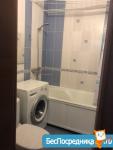 В санузле - стиральная машина, ванна и унитаз, зеркало, стены и пол отделаны кафелем.