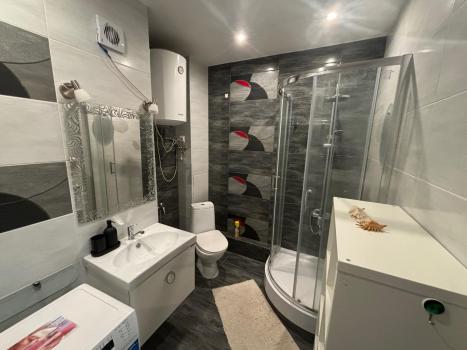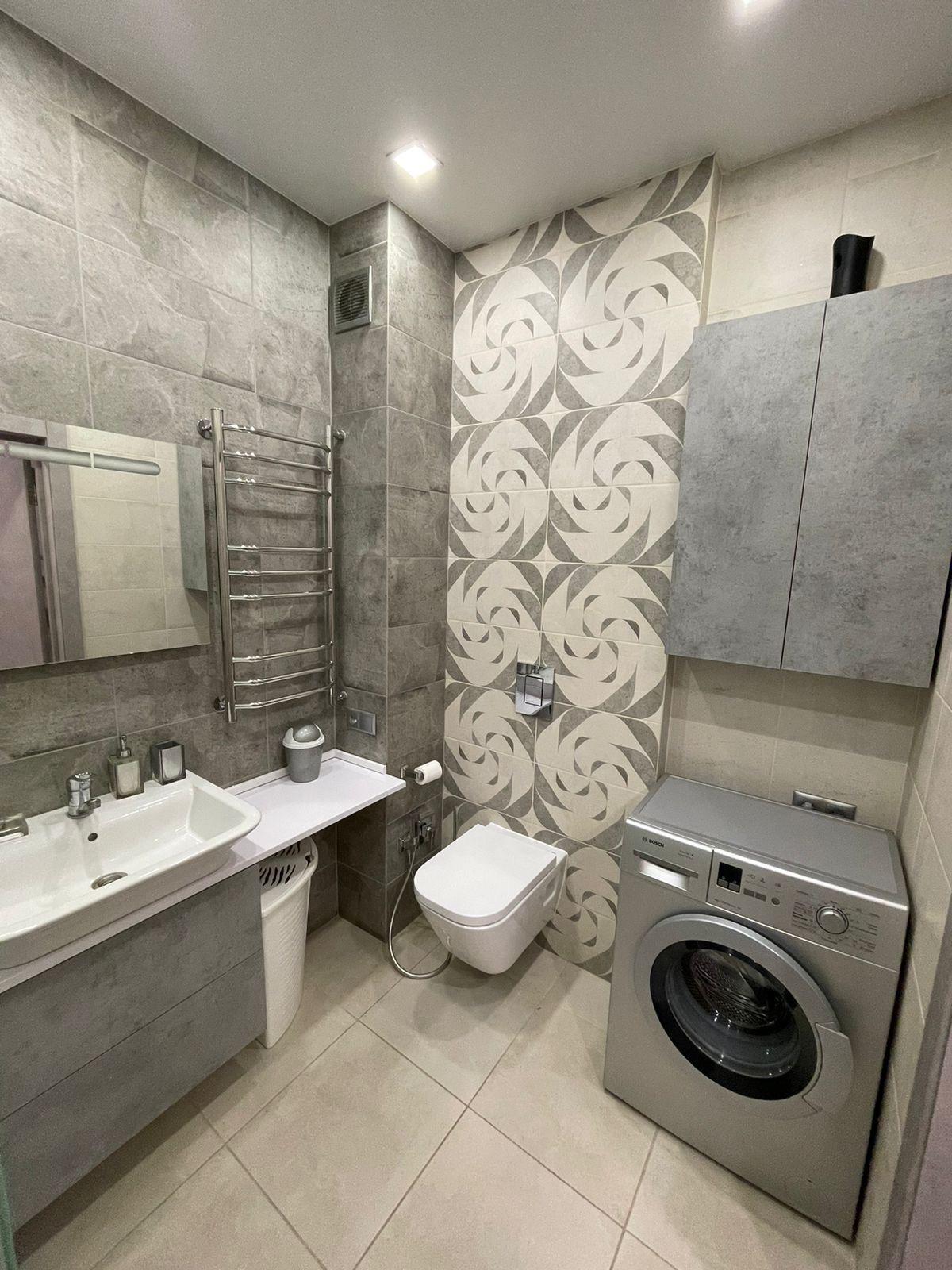 коммунальные услуги включены, ремонт дизайнерский, санузел совмещенный, балкон/лоджия, стиральная машина, холодильник, посудомоечная машина.