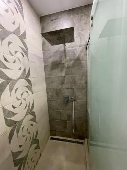 Большая ванная комната с тропическим душем и стеклянной перегородкой
