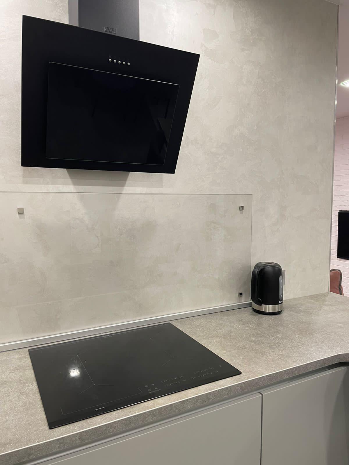 Современная кухня с удобными стульями. Есть дополнительные табуреты