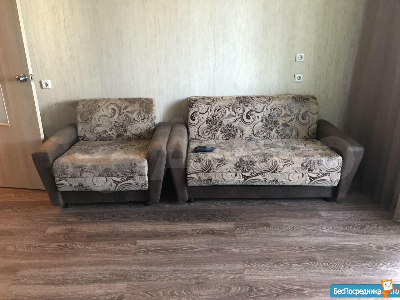 В квартире имеется необходимая мебель: диван , кресло, шкаф, кухонный гарнитур новый,стол , стулья.