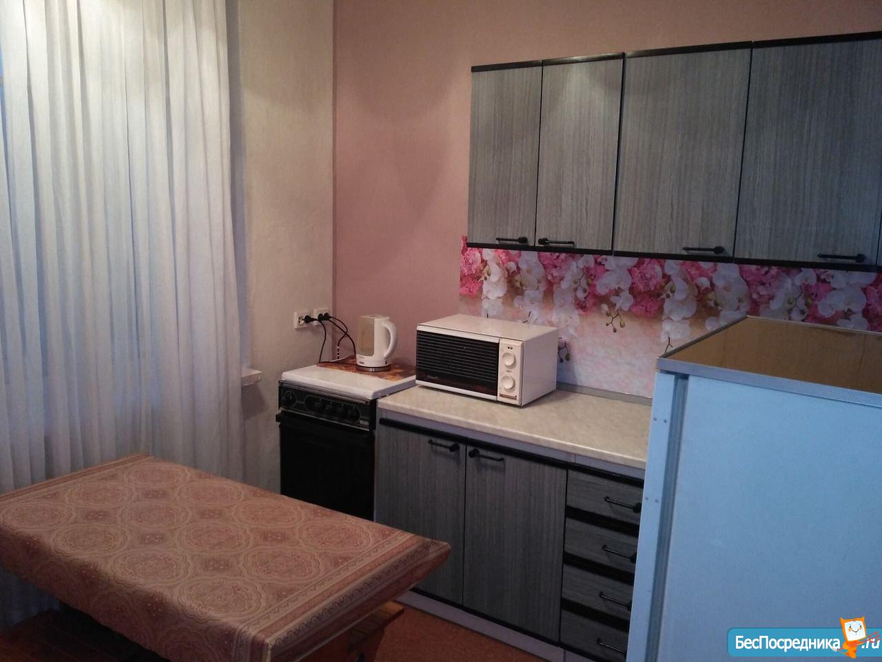 Сдам 1-комн. квартиру. В комнате - диван раскладной, шкаф и телевизор. На кухне - кухонный гарнитур, стол со стульями, холодильник, микроволновка. В ванне - стиральная машина - автомат. Две кладовки. 11000+свет. Без домашних животных. Только гражданам РФ.