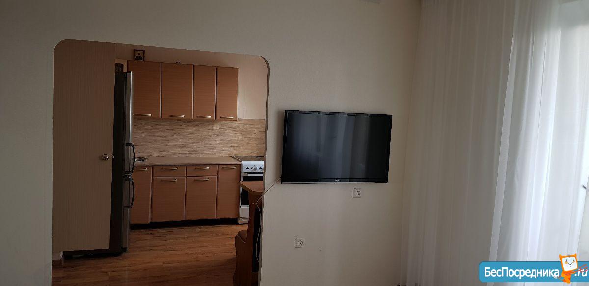 Не АГЕНСТВО! Длительно, предоплата за месяц. Меблированная, застекленный балкон стекло пакетом, пол на балконе с подогревом. В зале диван раскладной, мебельный шкаф. На кухне духовой шкаф, варочная панель 4 конфорки, холодильник, барная стойка, вытяжка, угловой диван раскладной. Оплата коммуналки Отдельно.