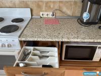 санузел - раздельный, мебель - кухня, хранение одежды, спальные места, кондиционер, холодильник, плита, микроволновка, стиральная машина, телевизор.