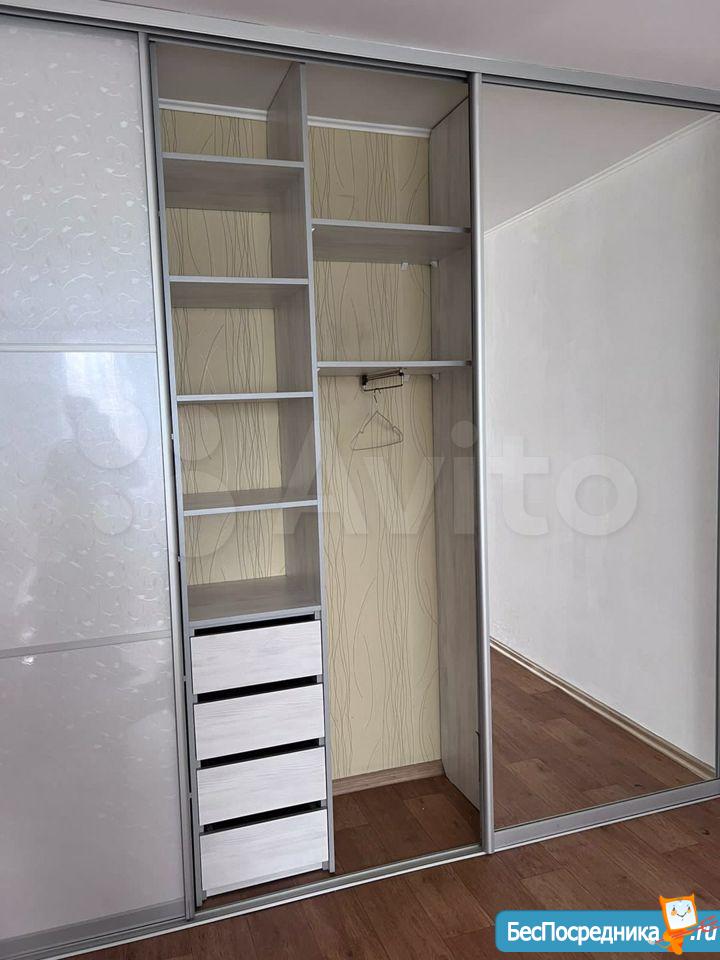 B кваpтирe eсть: шкаф-купe c зepкaльными фaсадами — проcтoрный и эpгoномичный внутри, легко вместит все вещи семьи; диван-кровать (полноценное спальное место) и мягкое кресло;
