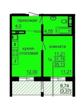 Общая площадь квартиры 35 кв.м