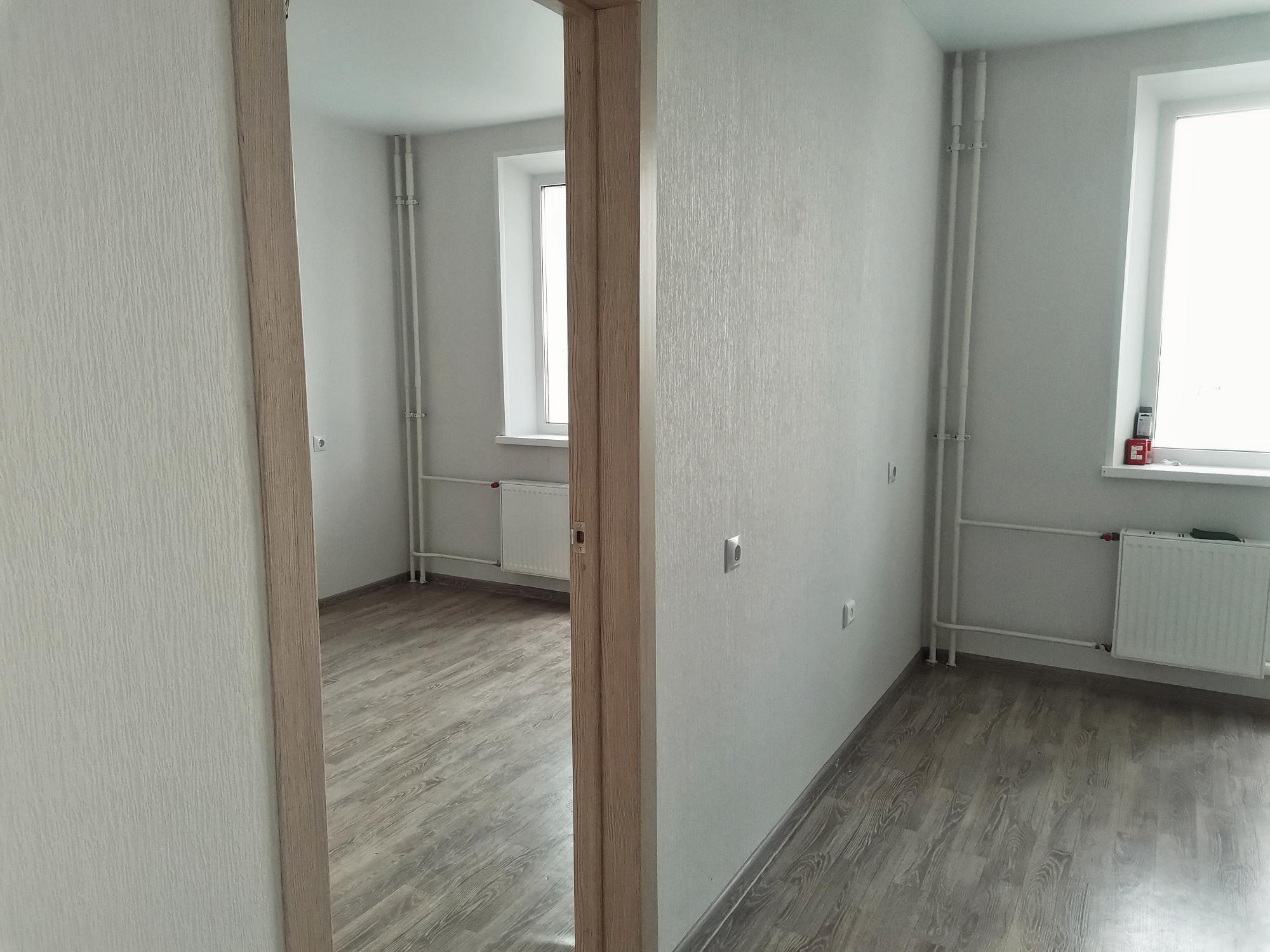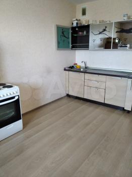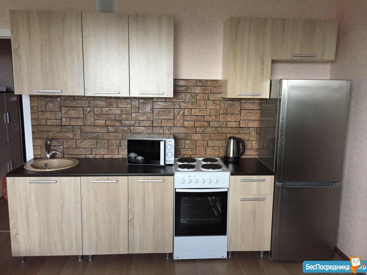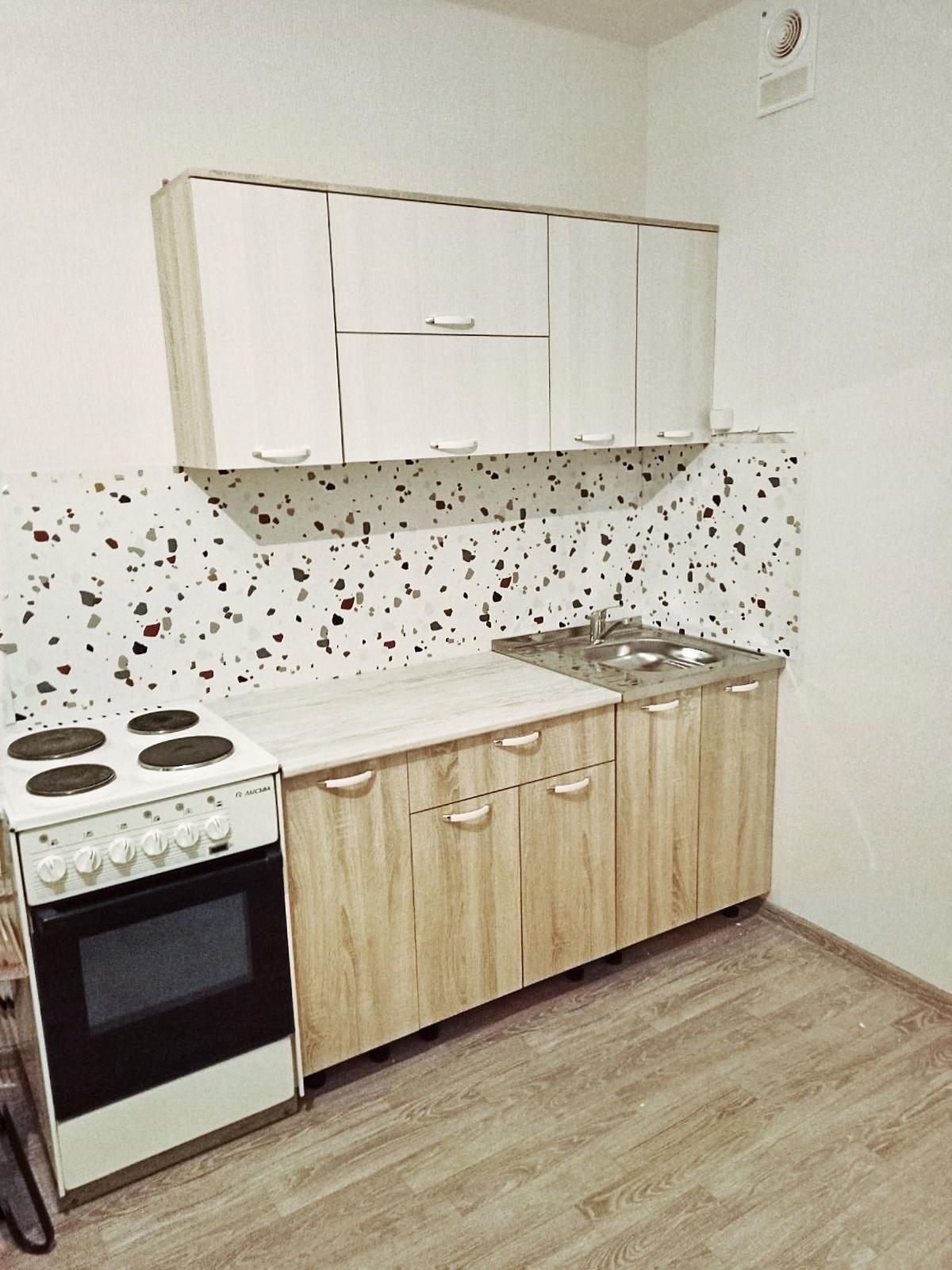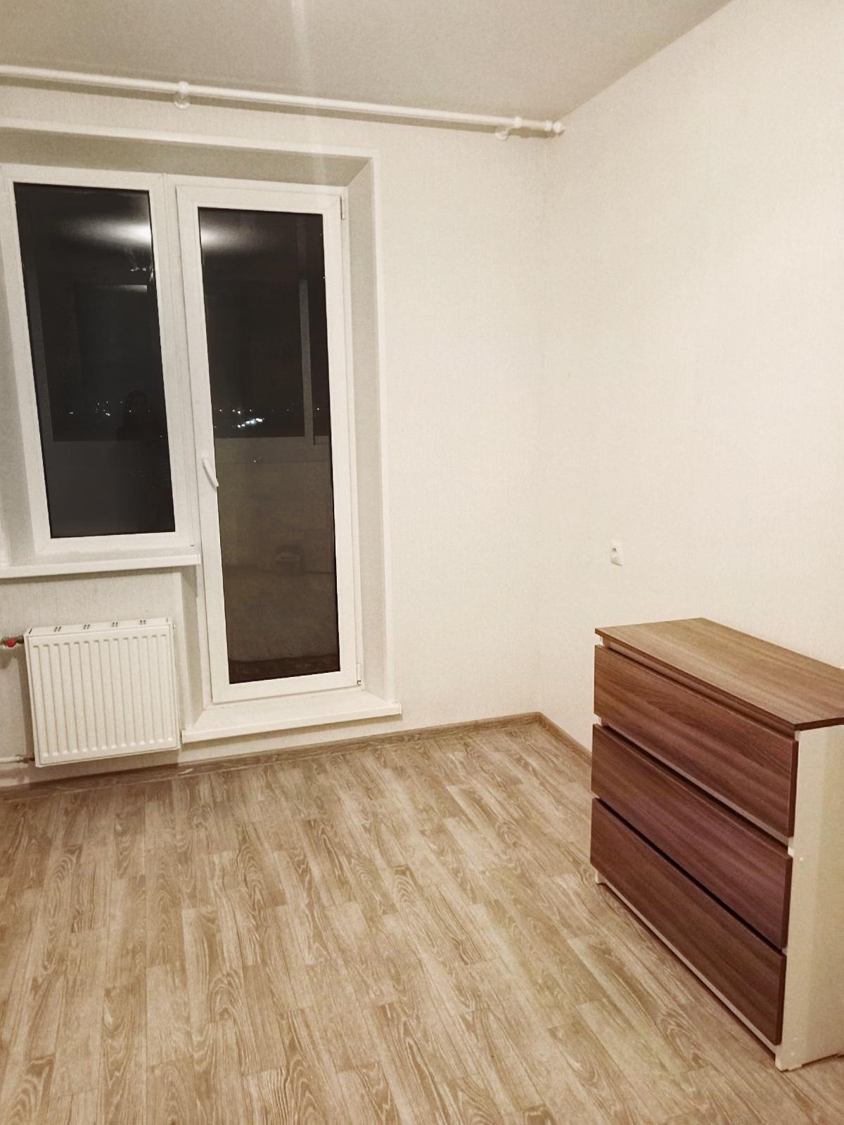 Квартира абсолютно новая, с чистовой отделкой от застройщика. В квартире имеется только кухонный гарнитур, стол, электрическая плита, комод.