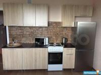 Кухня светлая и функциональная, оснащена современной техникой: холодильником, плитой микроволновой печью и чайником .Ванная комната и туалет раздельные, в ванной стоит стиральная машина автомат.